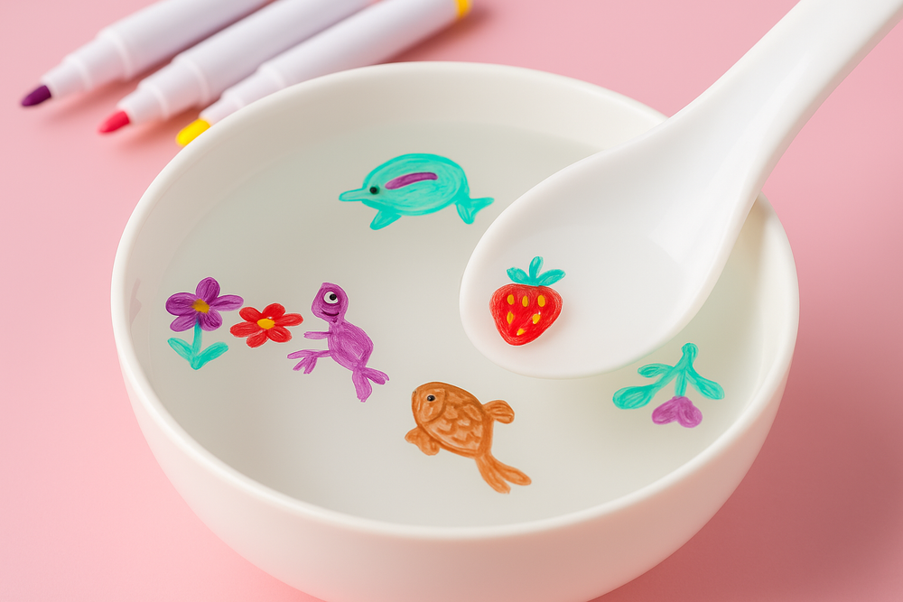They're not kidding, they really float! My son drew this turtle and rainbow and couldn't believe his eyes when they came off the spoon. Now we have a ‘magic aquarium’ on the table. A 10/10 toy!